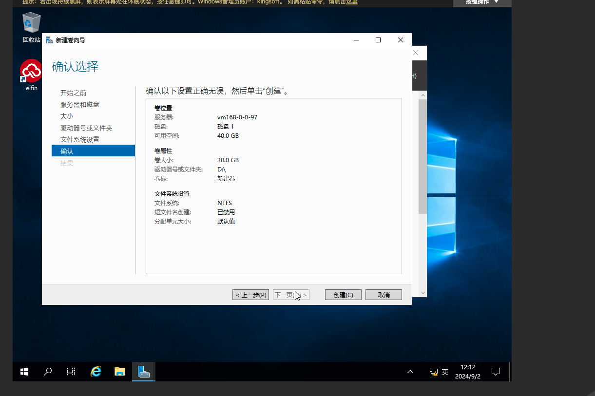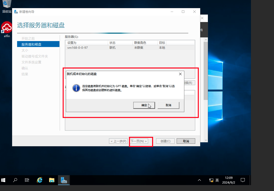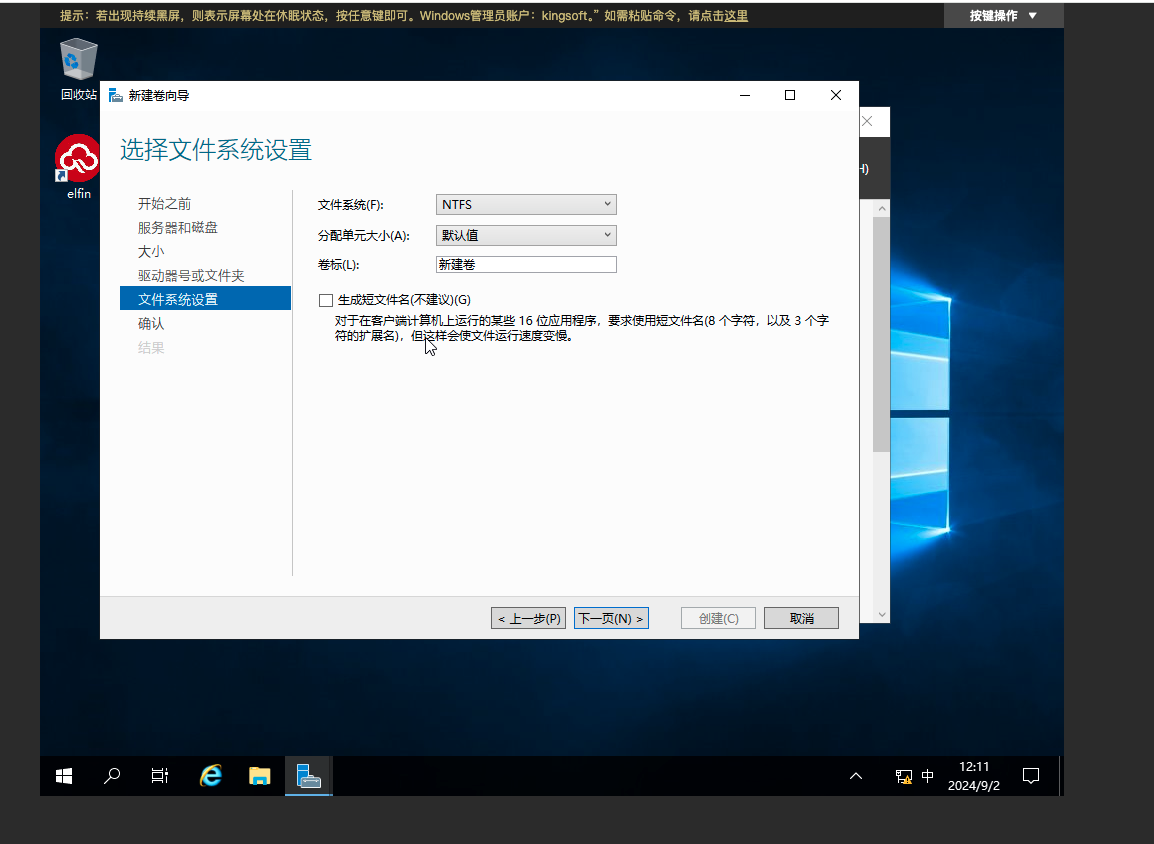 找到未被分区的卷,右键点击该磁盘,在弹出的快捷菜单中选择新建卷向导,根据向导提示进行操作,点击下一页、下一页、确认,输入期望创建的卷大小,选择新卷的驱动器号或存储路径,选择文件系统(磁盘大于2TB时一定要选择GPT分区形式),格式化分区,点击下一页,点击创建按钮,完成新卷的初始化和文件系统配置。