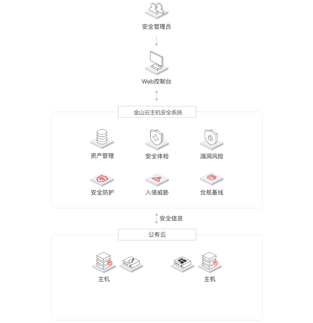 用户通过在主机中安装Agent后,获得金山云主机安全系统对主机全方位的安全保障能力,统一查看并管理同一区域内所有主机的防护状态和主机安全风险。