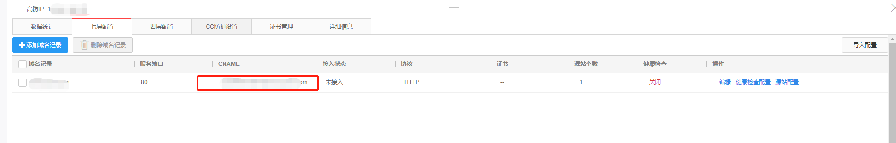 8. 待DNS解析生效后,回到高防IP控制台,若此条域名记录的接入状态变为“已接入”,表示CNAME配置已生效。