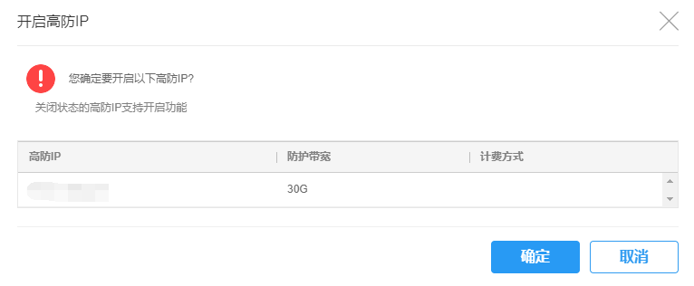 高防IP在购买成功后默认是开启的,需开启高防,防护才会生效。高防关闭后,高防的CNAME记录将指向源站。