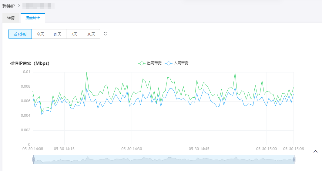 点击弹窗IP左侧的【公网带宽概览】,可以查看单个机房下按流量计费(按量付费(流量)和按量付费(流量)月结)的多粒度的EIP带宽汇总