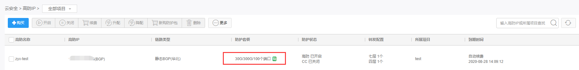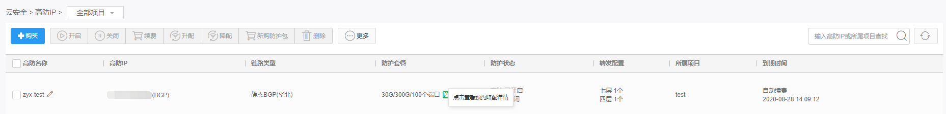 端口数量:可降配,每个高防实例最多降配至100个端口