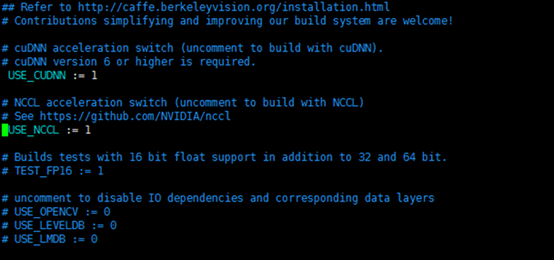 去掉USE_NCCL := 1 , USE_CUDNN := 1 之前的注释#,使其生效。