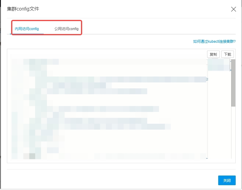 注:若您选择查看的集群config文件内容为空,表示您没有该集群的权限,请联系相关人员进行授权,操作详情请参考配置子用户RBAC权限