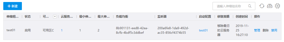 配置完成后,此条目将显示在页面的伸缩组列表中,示例如下: