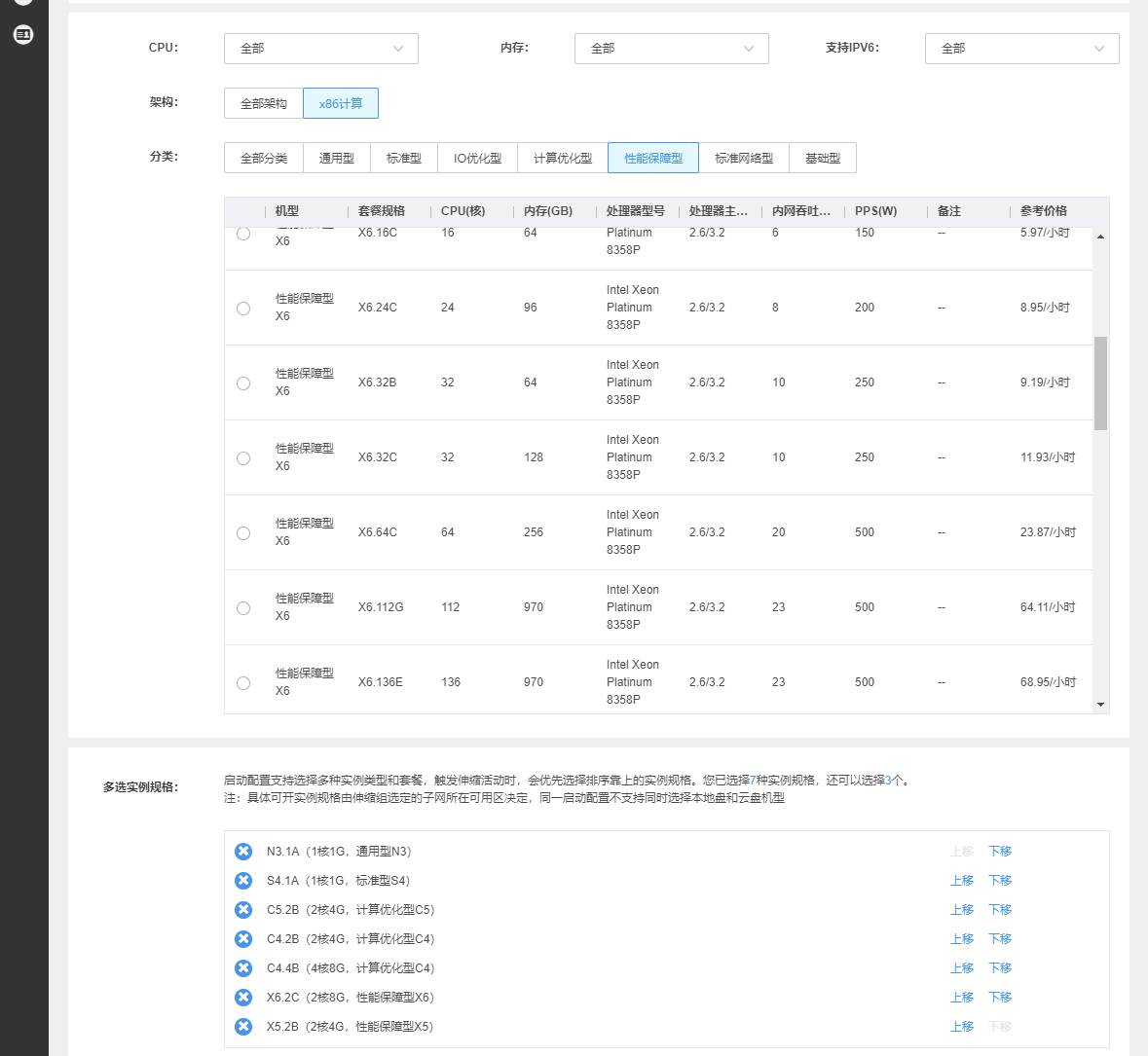 | 启动配置下方的订单价格估算限制 | 以第一优先级的实例规格为准,进行估算 |