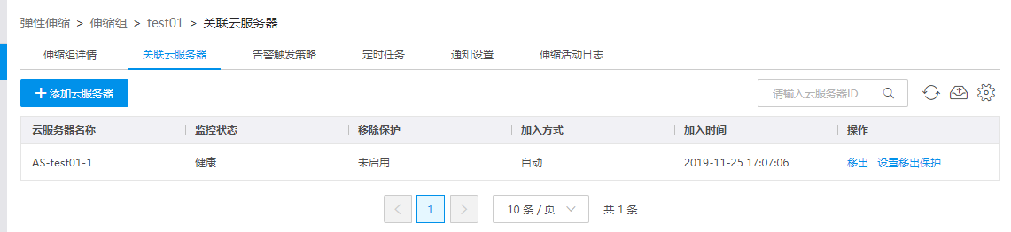 在该页面中可查看该伸缩组所绑定的云主机列表。
