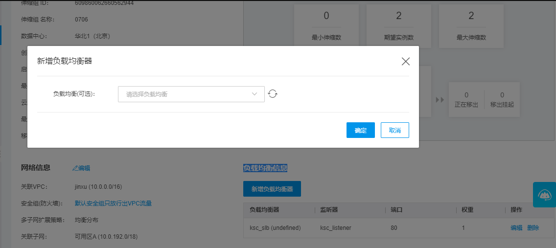 注:伸缩组关联的负载均衡实例必须与伸缩组在同一个网络环境中。