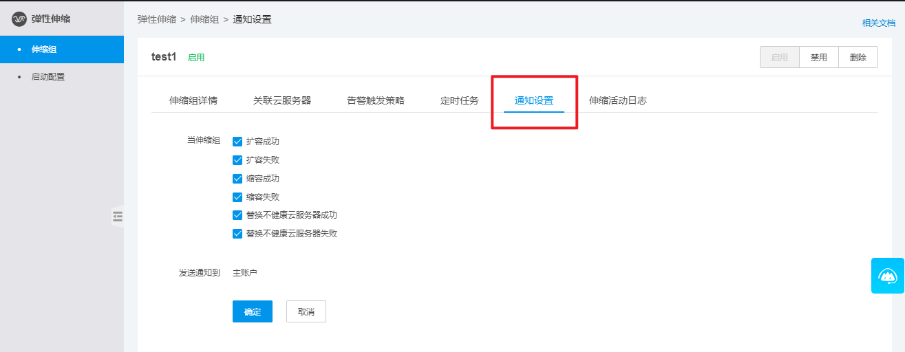 在伸缩组的管理页中,点击通知设置,然后创建通知策略。