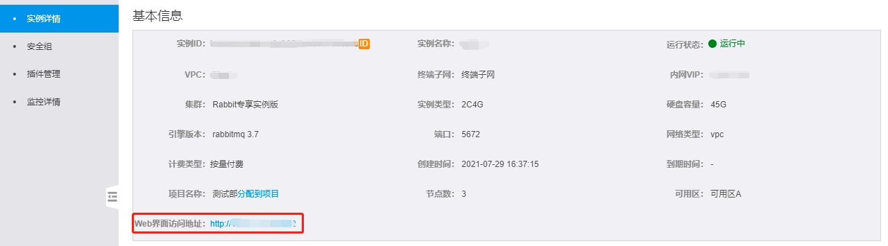 - 在RabbitMQ实例详情页面获取Web端地址。