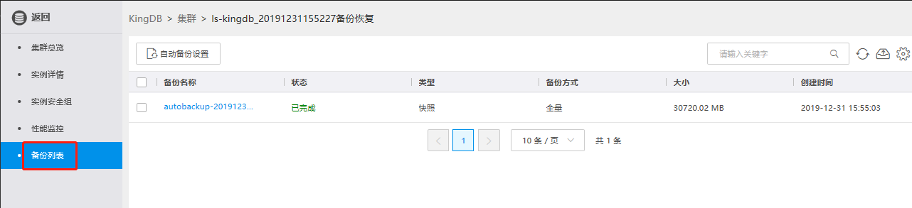 点击备份列表,即可看到实例的备份列表信息。