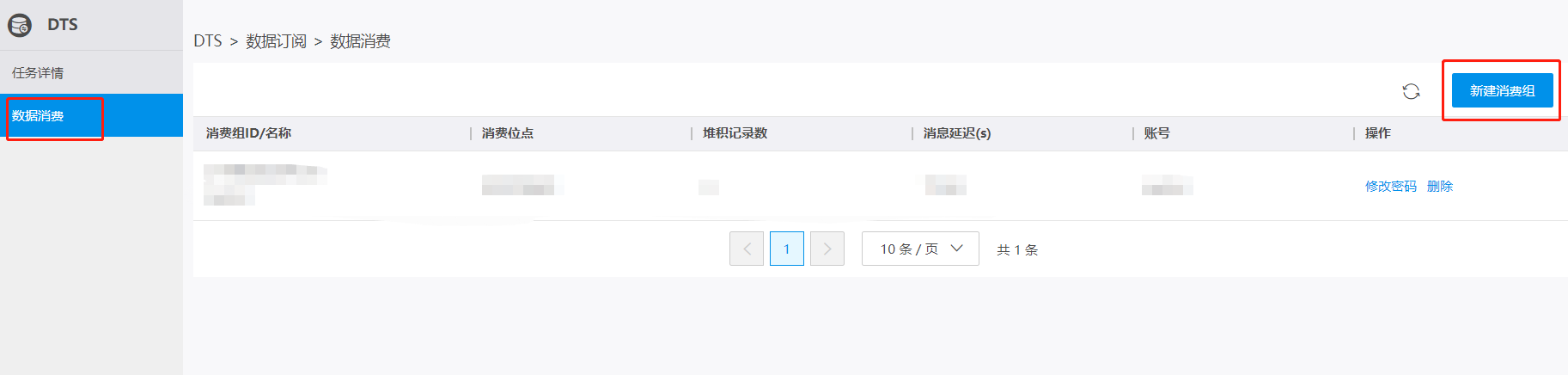 在数据消费页面,单击右上角的新建消费组。