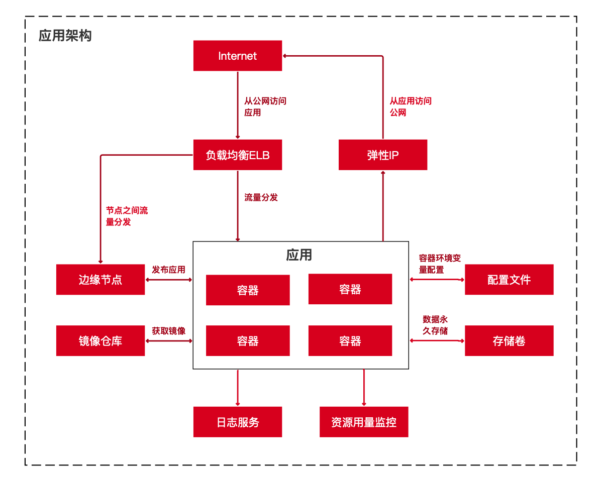 应用是基于Kubernetes工作负载(Workload)的一种资源组合的表现实体。是KENC用于描述业务的运行载体。分为无状态应用(Deployment)、有状态应用(StatefulSet)、任务-暂未开放(Job)、定时任务-暂未开放(CronJob)、守护进程-暂未开放(DaemonSet)。同时其他的Kubernetes资源如服务Service等通过标签(Tag)app:[appname]与应用关联起来。形成有机的整体发布到边缘节点对外提供服务。 KENC的边缘容器应用,基于原生Kubernetes提供以高扩展性、高可靠性的Kubernetes集群为资源载体的容器服务。基于Docker容器技术实现了服务构建、编排、部署、发布和自动化运维等功能。 边缘容器应用在发布至边缘节点时,与应用相关联的访问接入(Service、Ingress、EIP)、存储、配置集等会跟随应用一同发布。这样可以有效的简化发布流程,避免资源漏发等问题。