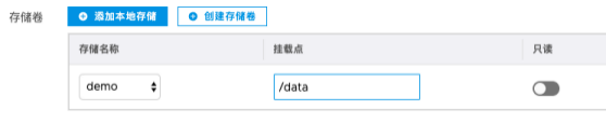 前面步骤已经完成存储卷的创建,此处点击添加本地存储即可完成关联操作。如果此前未创建存储卷,在应用管理的容器配置下,先点击创建存储卷即可。