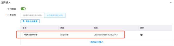 测试nginx,需要配置访问接入,本文创建的是负载均衡类的访问接入。