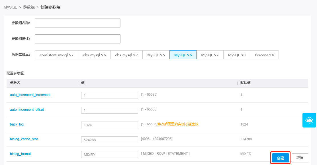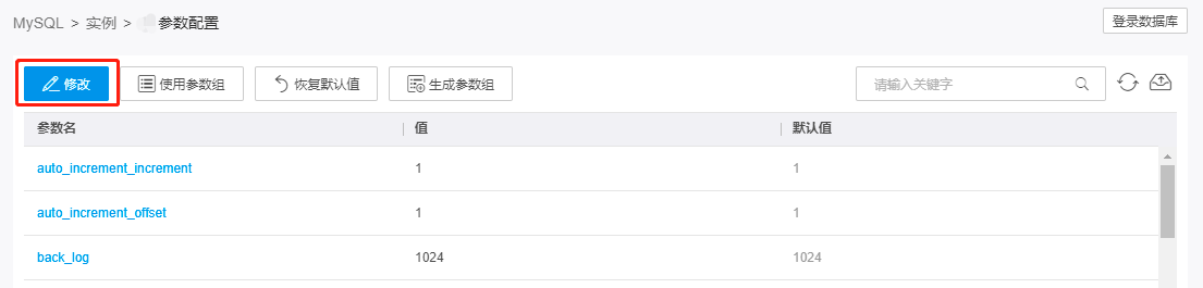 注意:删除或修改参数组不影响实例参数。