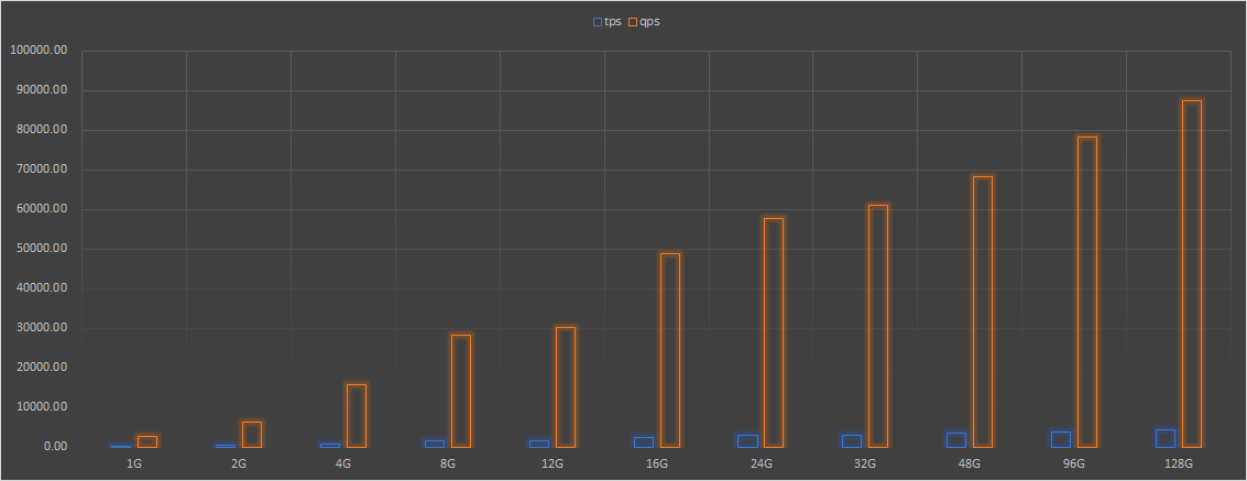 | 测试实例内存 | 最大连接数 | SysBench线程数 | QPS | TPS |