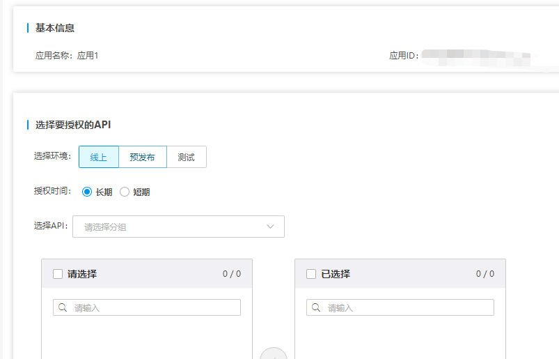 1.单击“调用API > 应用管理”,进入到应用管理信息页面。