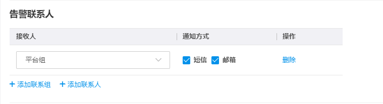 3、管理告警接收人按钮,可以增加、删除告警接收人。