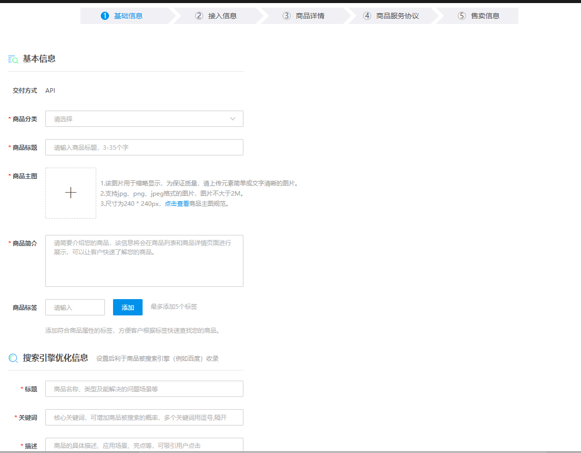 10.商品上架后,接入信息和商品服务协议不允许修改。其他信息修改后需要重新审核上架。