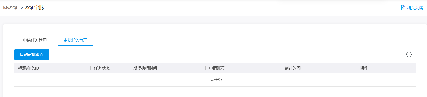 点击SQL审批进入SQL审批页面后点击审批任务管理 > 自动审批设置。