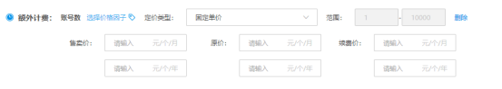 如果您的商品规格不仅仅按周期 or 按次收费,还有其他的按量计费的收费项(如”账号数““任务数”),您可以使用“添加额外计费项”配置此计费项并为此额外计费项进行定价。