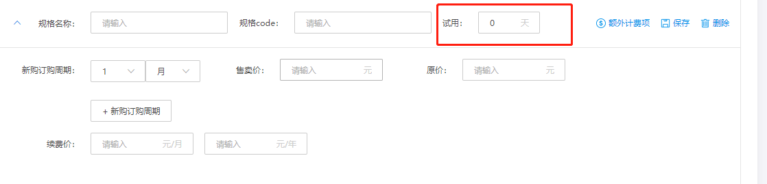 - 如果填写天数为0,表示此规格不支持试用