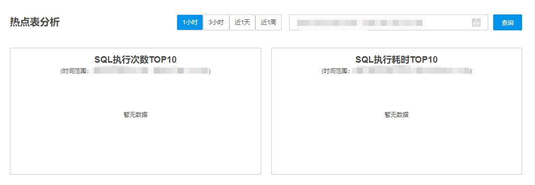 分别展示选定时间范围内SQL执行次数TOP10与SQL执行耗时TOP10的表信息。