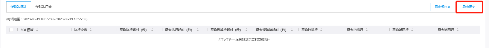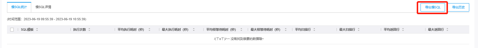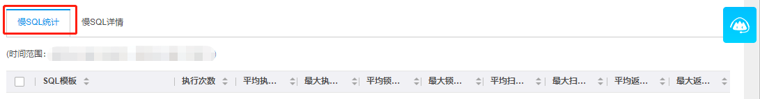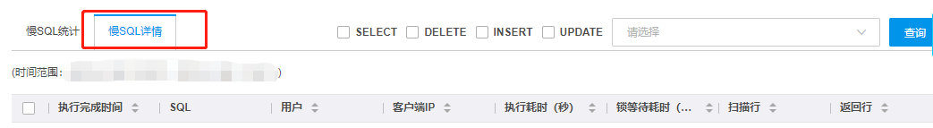 点击下方的慢SQL统计选项卡,可以查看特定时间内以SQL语句为维度的慢SQL详情表。