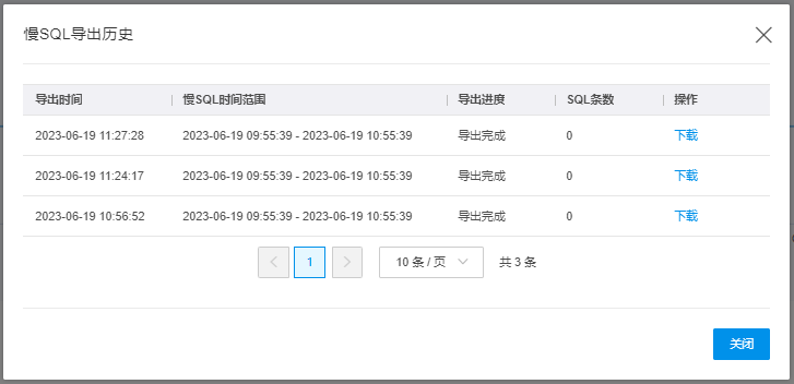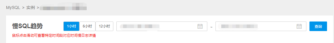 点击指定慢SQL模板名称,选项卡自动切换到慢SQL详情,并展示此模板内所有慢SQL语句。