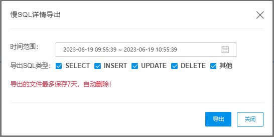 还可以通过SQL类型(复选框)+SQL模板(下拉菜单)对特定时间内的慢SQL语句进行搜索。