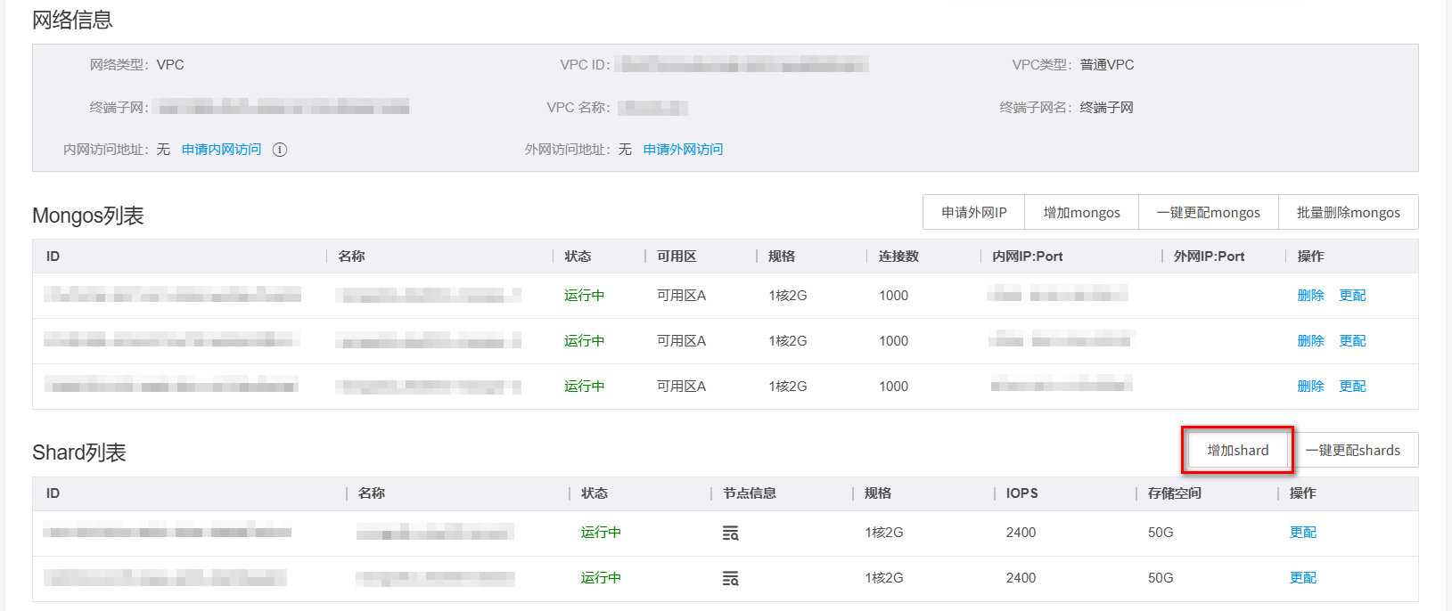 只支持增加shard,暂不支持删除shard,增加的时候支持自由选择shard规格。
