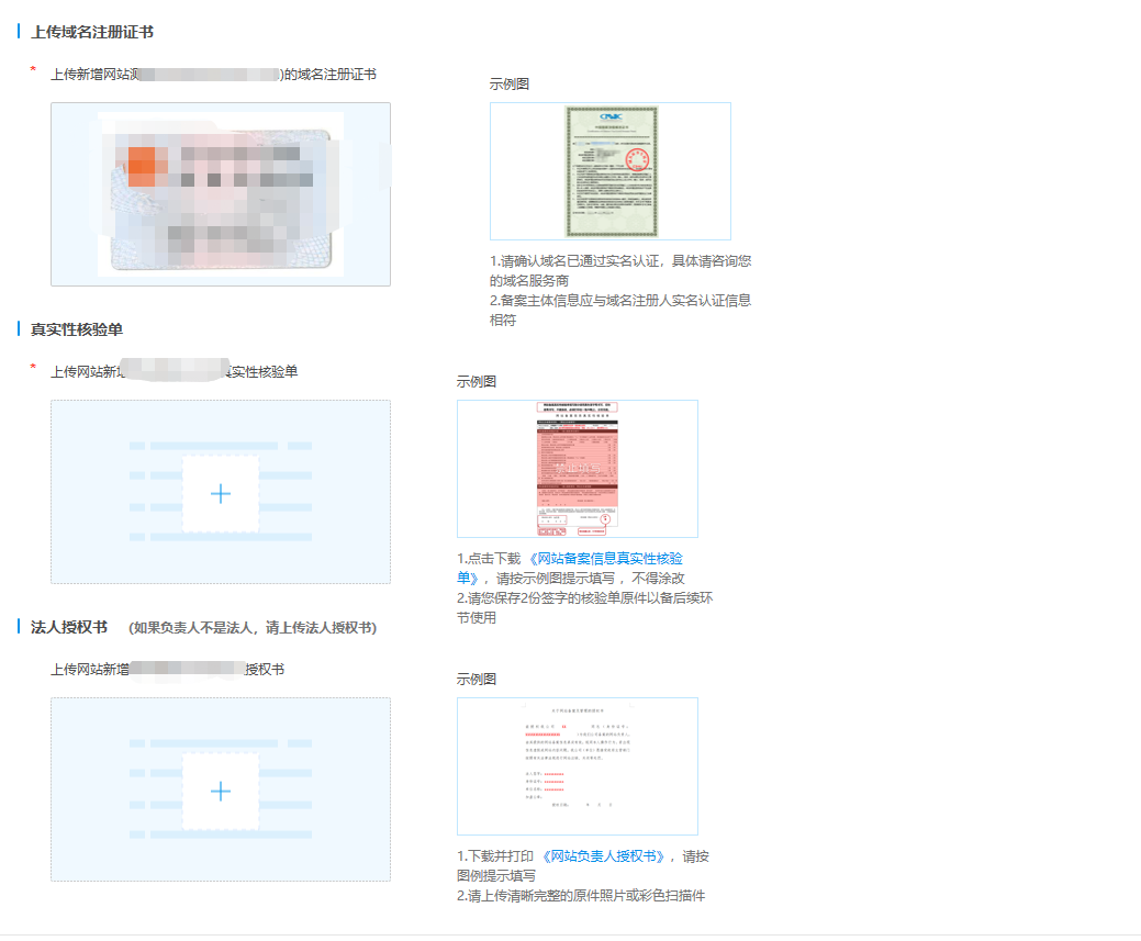 网站域名备案时,需根据您的备案场景和管局规则选择性的上传一些辅助资料