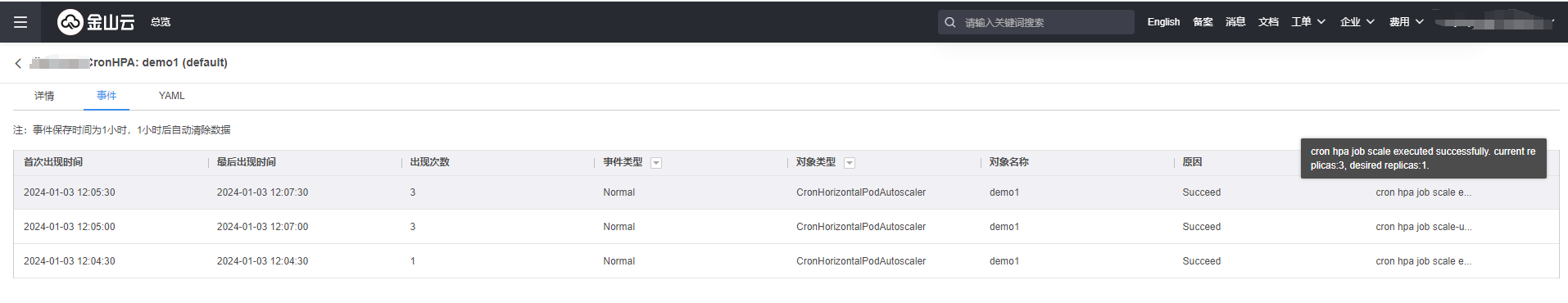 进入CronHPA规则内查看扩缩容记录