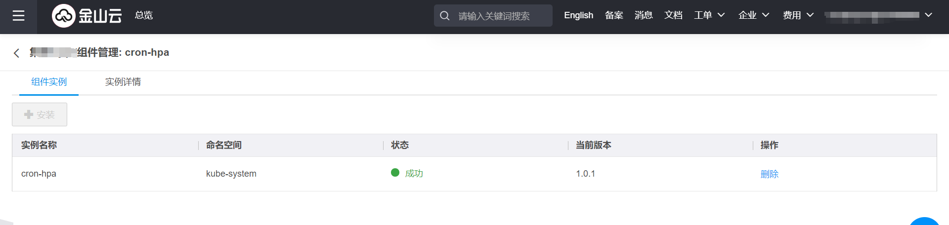 进入集群内,在组件管理中安装CronHPA组件,并确保CronHPA资源运行正常