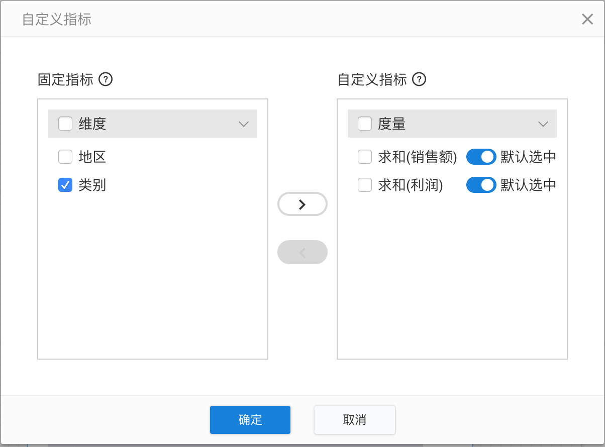 固定指标指的是固定于表格的指标,阅览报告时无法修改固定指标的显示状态;