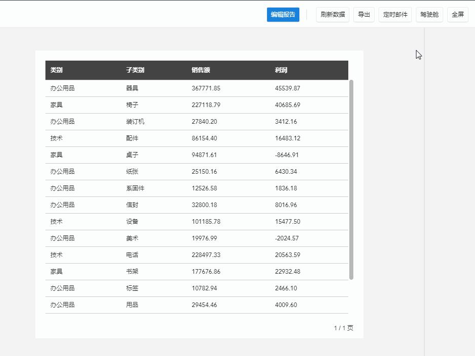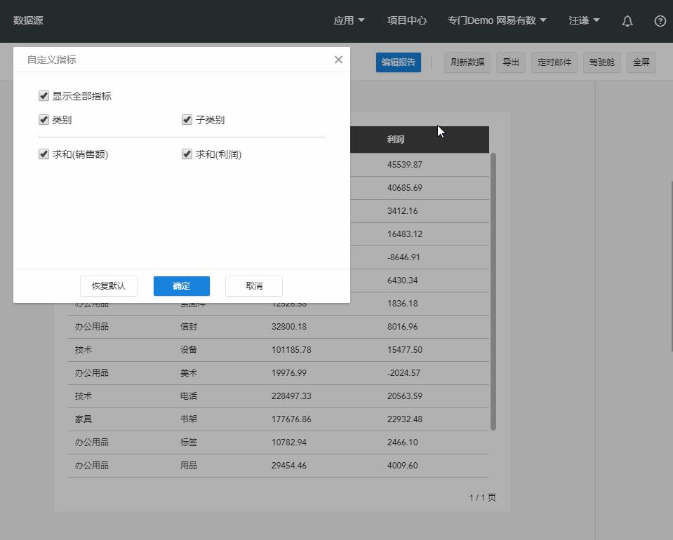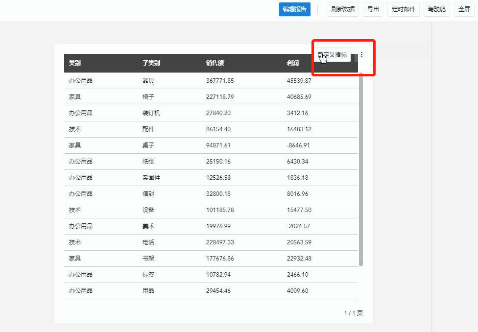 表格控件支持在阅览时动态选择需要展示的指标,效果如图所示。