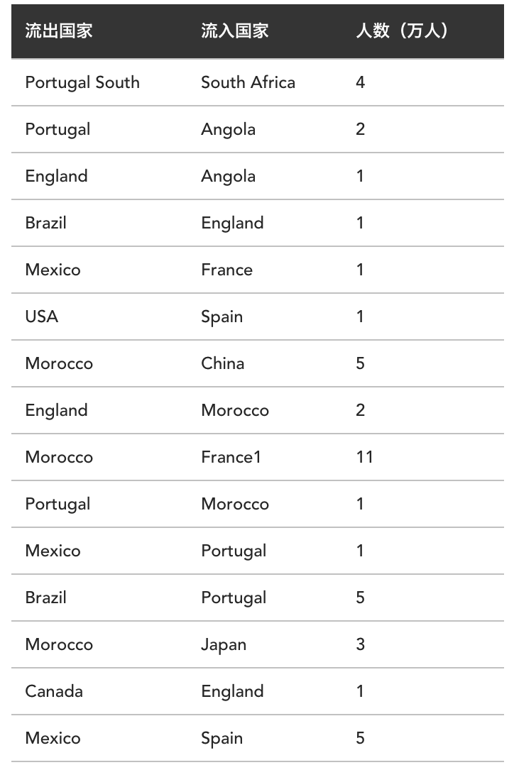 如果用桑基图来展示这份数据,我们可以更直观的看到不同国家之间的人口流动情况,如图所示。
