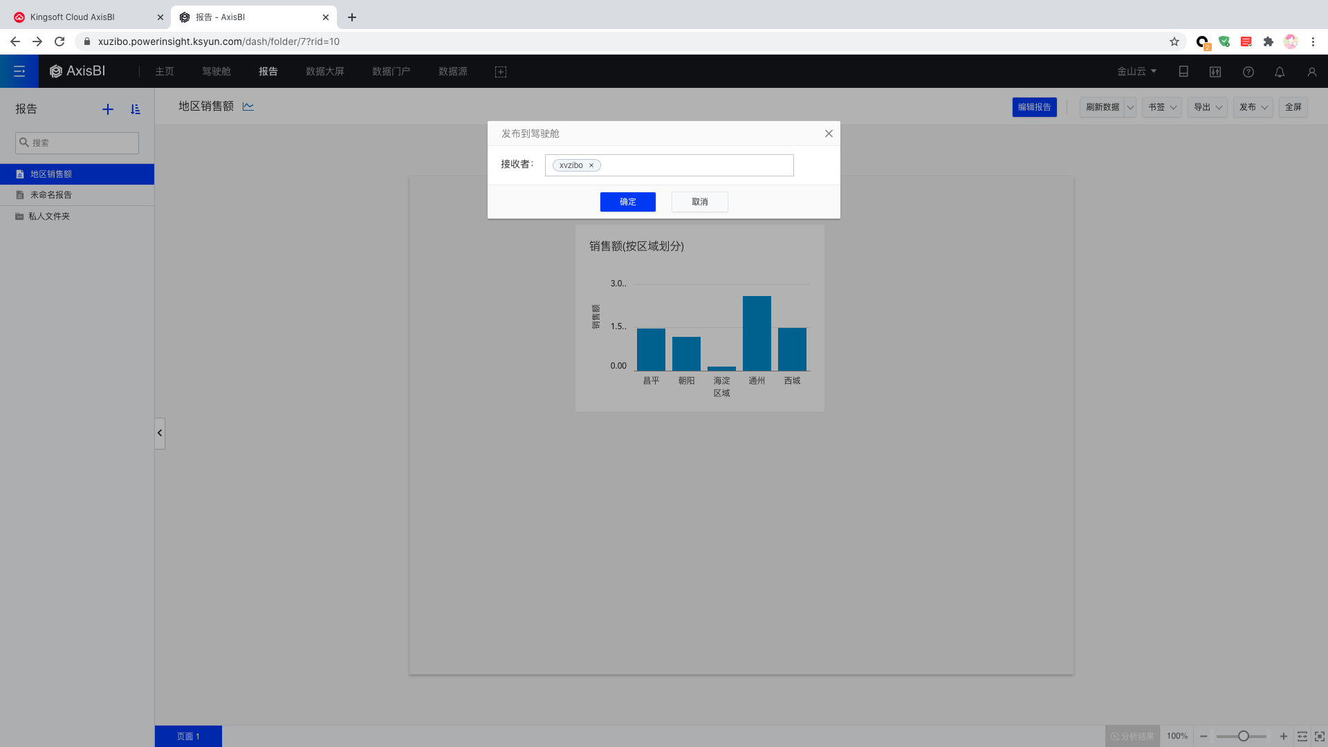 在弹出的窗口中,可以选择将哪些报告发布到驾驶舱,以及发布到哪些用户或角色的驾驶舱。