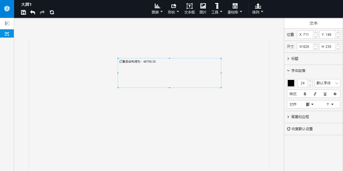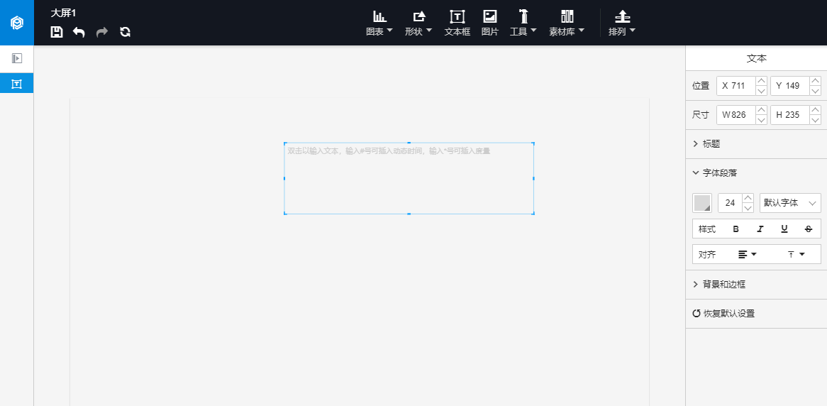 可以在大屏界面添加文本框并输入想要在界面中表达的文本内容。
