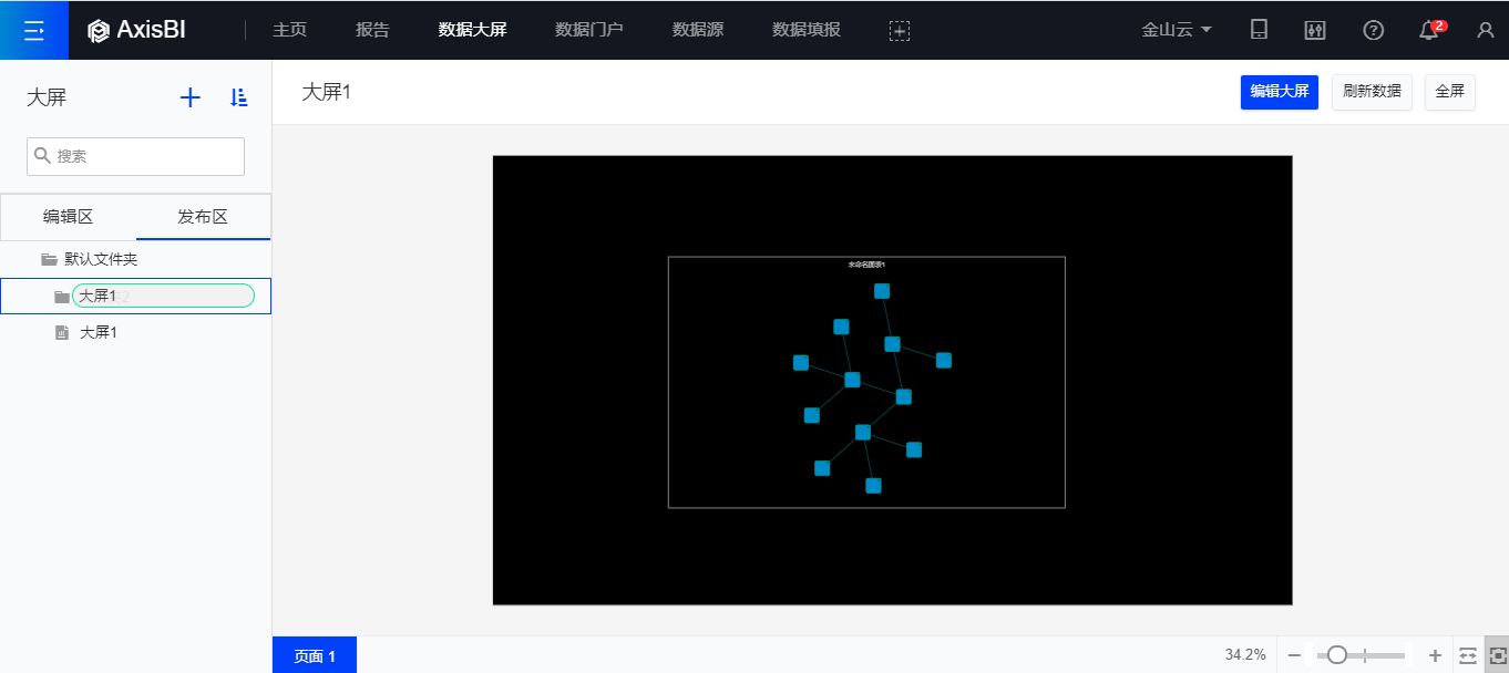 1.在发布区选择大屏,点击去编辑;