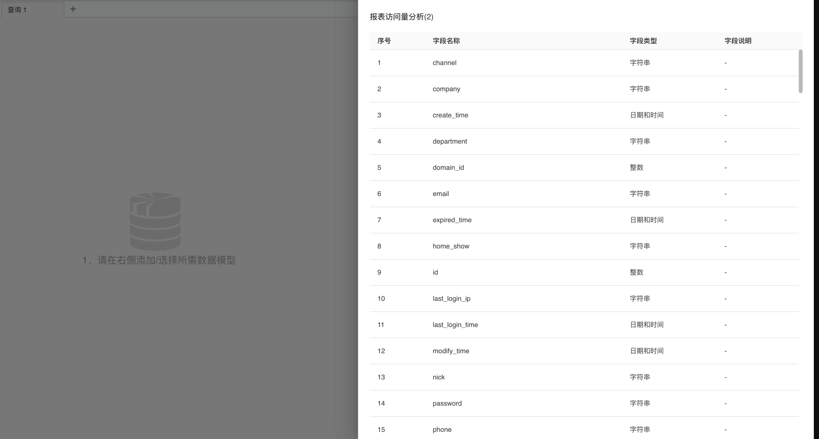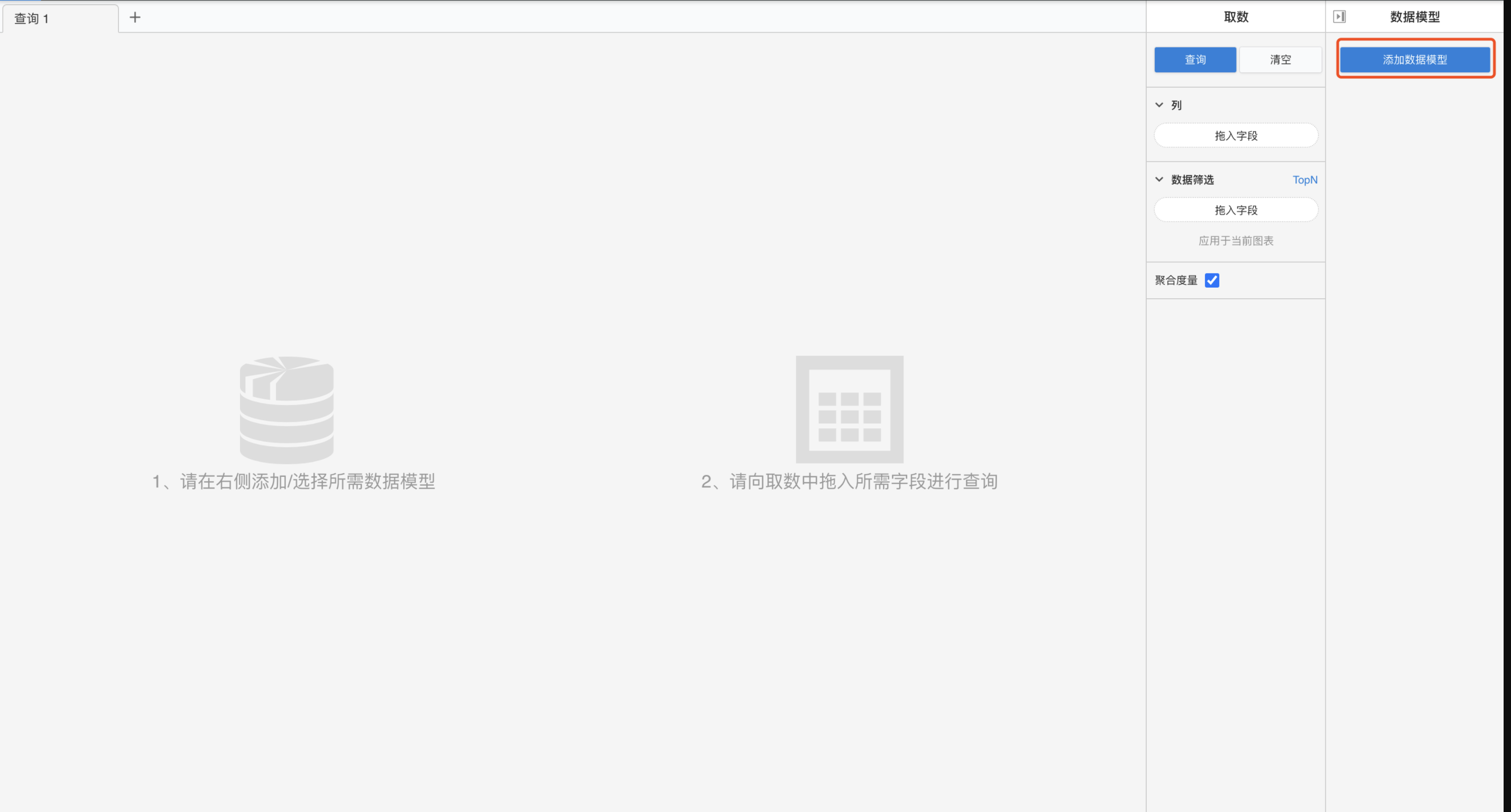 首次进行查询时,需要添加所需数据模型。