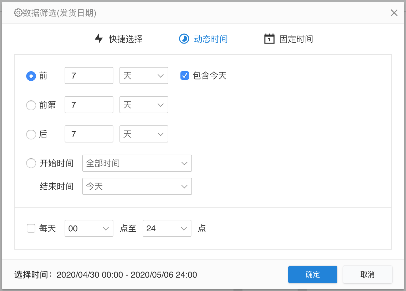 动态时间可动态选择前n天,前第n天,动态的开始结束时间: