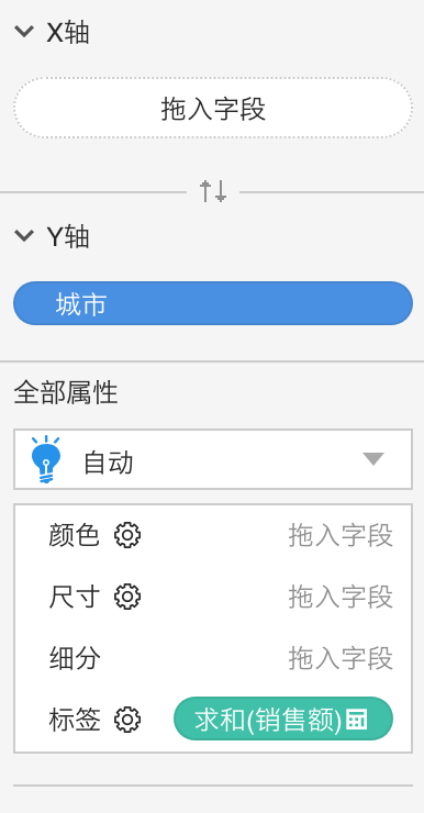 计算内容是决定当前视图中,哪些维度用来分区计算,哪些用来在区分好的组里面按照顺序做计算。如上图中配置,以及当前面板的配置