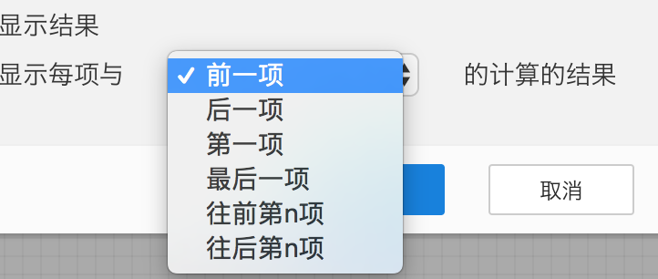 图2中除了可以指定聚合计算的类型,前后多少项,是否包含当前项,还可以选中包含前面所有项或后面所有项。