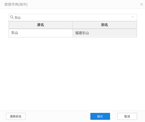 3.将别名中的东山改为福建东山。