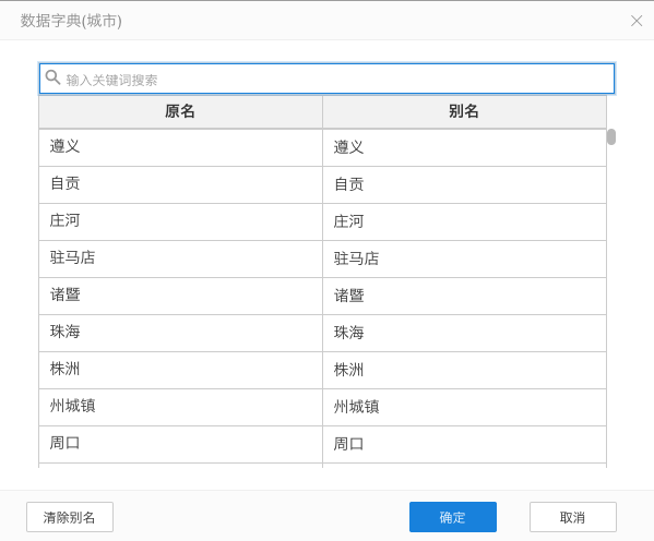 **数据字典(修改别名)**用于修改离散字段成员的名称,当某个字段成员名称不符合预期的时候可以手动修改,**数据字典(修改别名)**仅针对维度