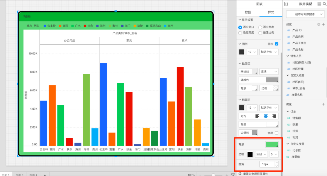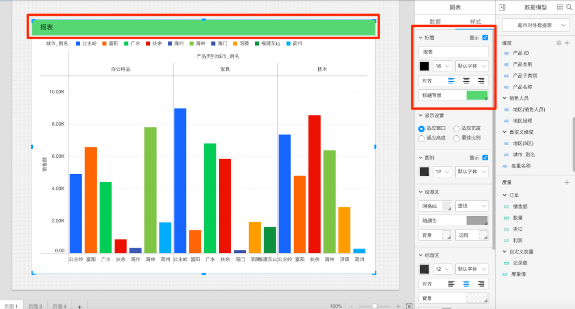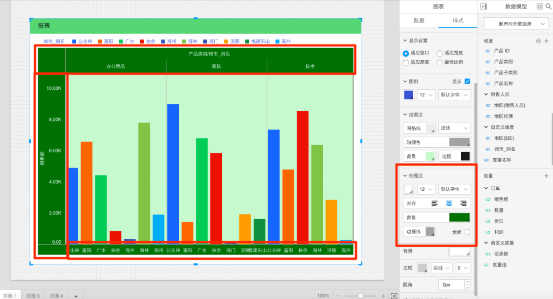 标题区指图中红框内部分;可设置该区域文字的颜色、字号、字体、对齐方式;还可设置标题区内的背景颜色和边框颜色。