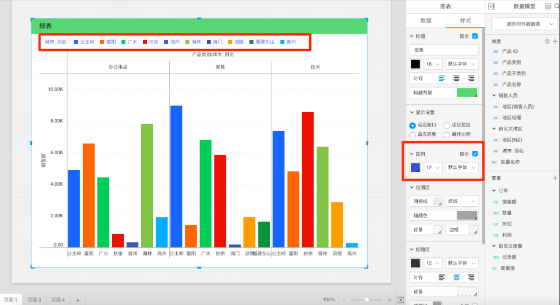 图例指图中红框内部分;图例可选择显示或不显示,默认显示图例;图例文字的字色、字体、字号均可被设置。