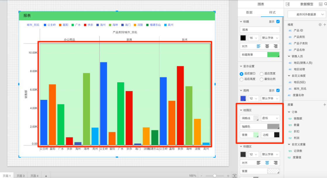 绘图区指图中红框内部分;可设置该区域网格线的颜色和线形、坐标轴的颜色、绘图区内的背景颜色和边框颜色。
